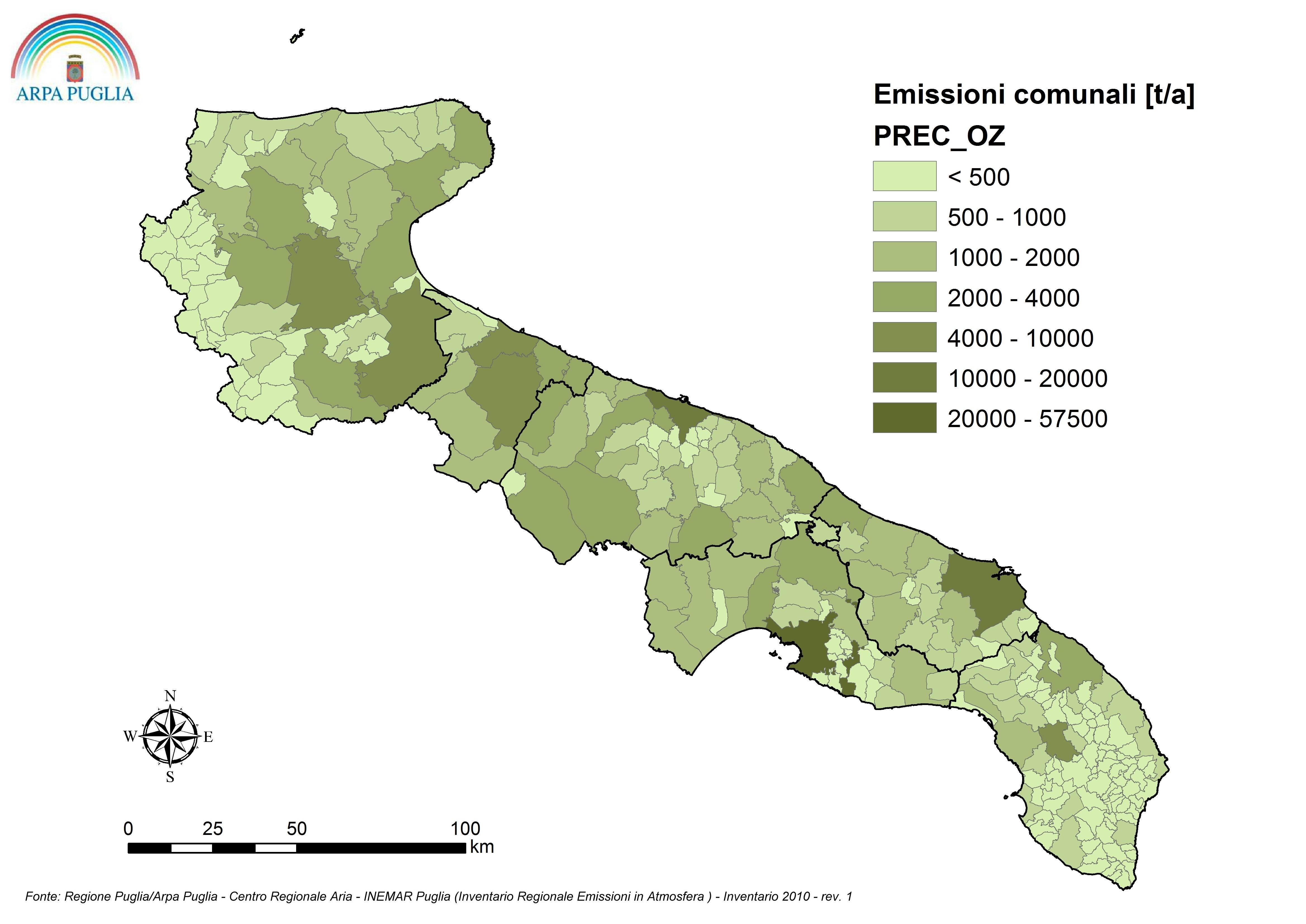 In questa sezione sono presentate le mappe relative ai principali inquinanti per l'anno 2010 per la versione Inventario 2010 rev.1